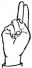 На ћирилици написано ДАНИЈЕЛ ПЕНА састоји се из 11 слова [?]. Исписано ћириличном једноручном азбуком за глувонеме: